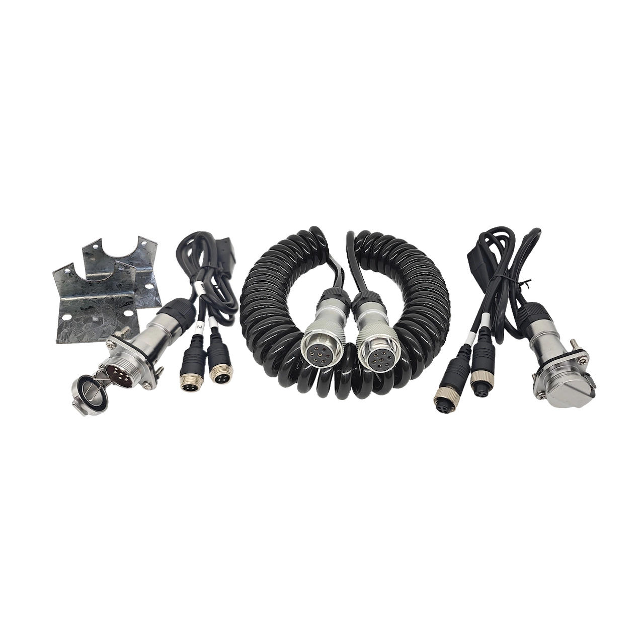 Dual Trailer Connection Kit is a caravan/trailer pro quick disconnect kit which suits 4 Pin camera systems. The kit includes heavy duty sockets for the vehicle and trailer that features metal mounting brackets and weatherproof covers to protect the sockets from dust and water when not in use. This kit features Dual 4 Pin connections for 2 camera’s running through the curly cord.