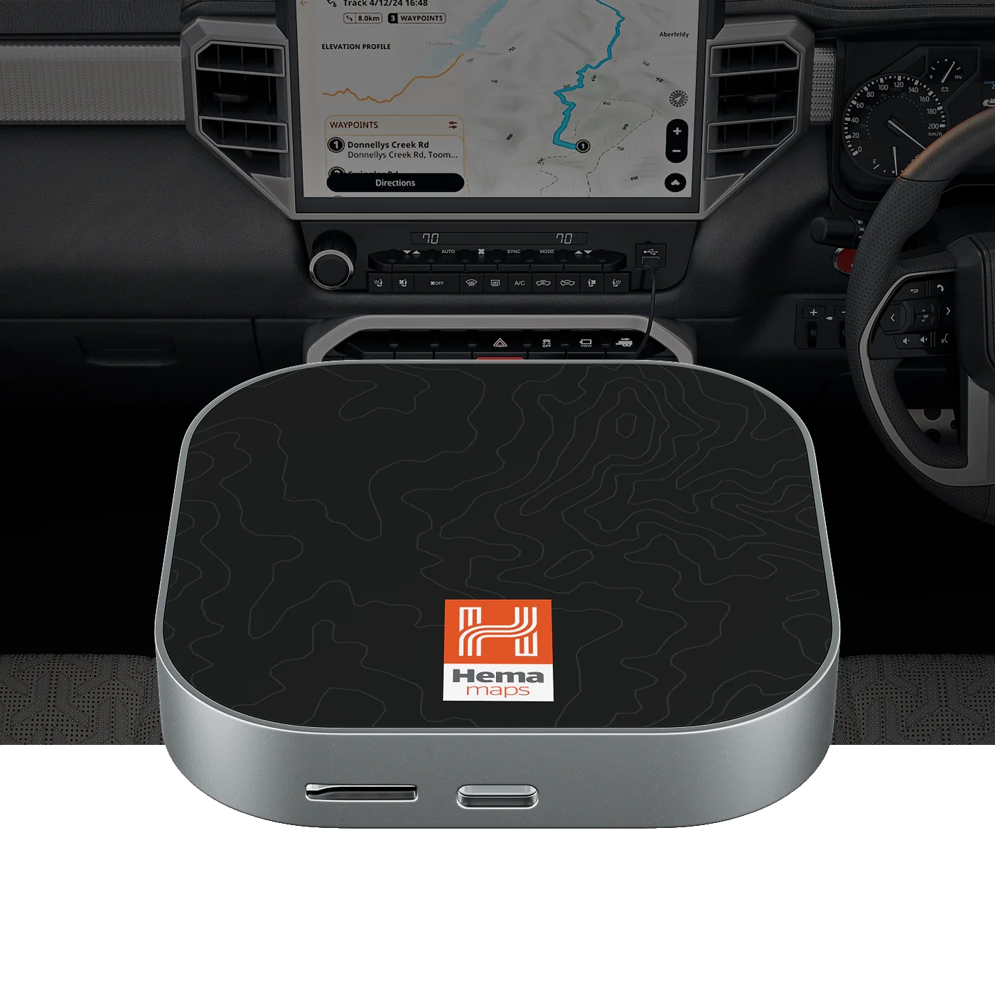 - Hema 4WD Maps app – Access digitised Hema off-road paper maps and more (separate subscription required).